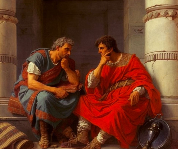 He comforted his friends, saying, “What need is there to weep over parts of life? The whole of it calls for tears.” He attempted to bleed out by cutting his veins, but when that proved slow, he consumed poison and finally entered a warm bath to speed up the process. Even in his final moments, he tried to ease the sorrow of those around him.